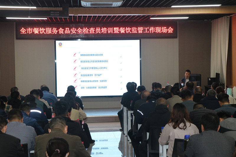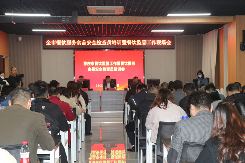 為進一步豐富餐飲服務食品安全檢查員業(yè)務知識,提升全市餐飲環(huán)節(jié)食品安全監(jiān)管水平,棗莊市市場監(jiān)督管理局根據(jù)2023年餐飲監(jiān)管工作計劃,于11月8日,在臺兒莊古城學校召開全市餐飲監(jiān)管工作暨餐飲服務食品安全檢查員培訓會議,市、區(qū)兩級局分管局長、餐飲科全體人員、全市餐飲服務食品安全檢查員參加。會議由市市場監(jiān)管局副局長張衍耀主持;臺兒莊區(qū)委常委、副區(qū)長孫作偉致辭,并介紹建設“食安臺兒莊”的經(jīng)驗和做法;山東省市場監(jiān)管局餐飲處一級調研員遲玉聚博士,作《深刻學習領會習近平總書記重要論述精神努力守住食品安全底線》主題報告。