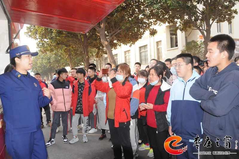 培訓(xùn)開始,朱干事通過一個(gè)個(gè)真實(shí)的案例,結(jié)合近年來發(fā)生的典型火災(zāi)事故,運(yùn)用圖片及視頻資料,深入淺出地講解了消防安全工作的重要性、火險(xiǎn)的識(shí)別、初期火災(zāi)處置、滅火設(shè)備的使用方法等消防常識(shí);隨后帶領(lǐng)師生們參觀了消防車,簡(jiǎn)要講解了消防車輛的配置、特點(diǎn),以及各類車載器材裝備的名稱、性能、用途,并針對(duì)現(xiàn)場(chǎng)學(xué)生們提出的各類問題一一解答。