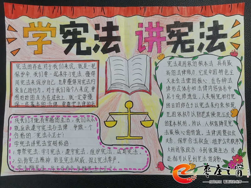 據悉,棗莊市實驗小學各中隊通過召開“學憲法,講憲法”主題隊會、制作主題手抄報、“學憲法 講憲法”知識競賽等活動,激發(fā)學生學習憲法知識的熱情,強化了師生的法治意識,為平安法治校園建設營造了良好氛圍,為“幸福+”教育再添新的精神源泉。(趙敏)