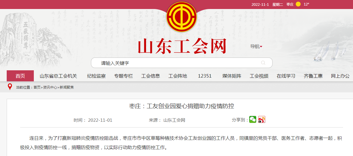10月29日,棗莊市市中區(qū)草莓種植技術(shù)協(xié)會(huì)工友創(chuàng)業(yè)園號召會(huì)員單位,為當(dāng)?shù)貞?zhàn)“疫”貢獻(xiàn)力量。滿滿兩車的方便面、面包、八寶粥等愛心物資,向奮戰(zhàn)在疫情防控一線的工作人員表達(dá)了關(guān)心和問候。