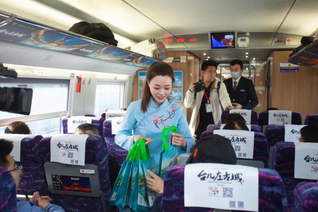 隨后,出席嘉賓共同為“臺(tái)兒莊古城”高鐵冠名專(zhuān)列首發(fā)啟程進(jìn)行剪彩并互贈(zèng)紀(jì)念品。